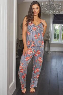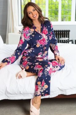 Pour Moi Luxe Woven Twill Longline Gown – Navy/Orange Floral