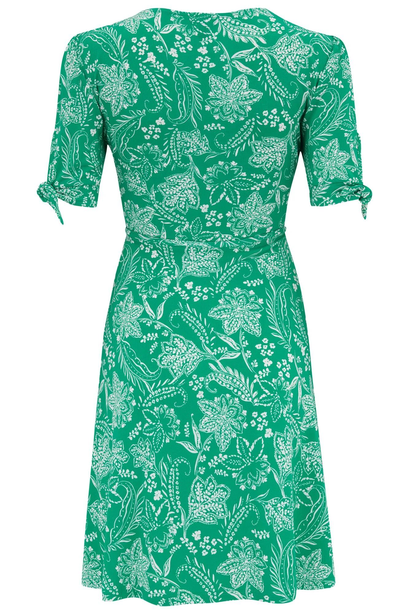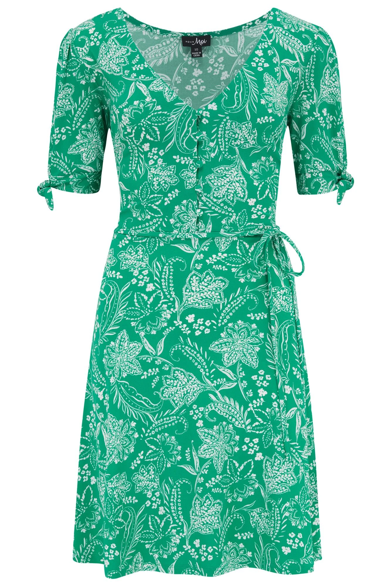 Pour Moi Bella Slinky Stretch Tie Sleeve Tea Dress – Green/White