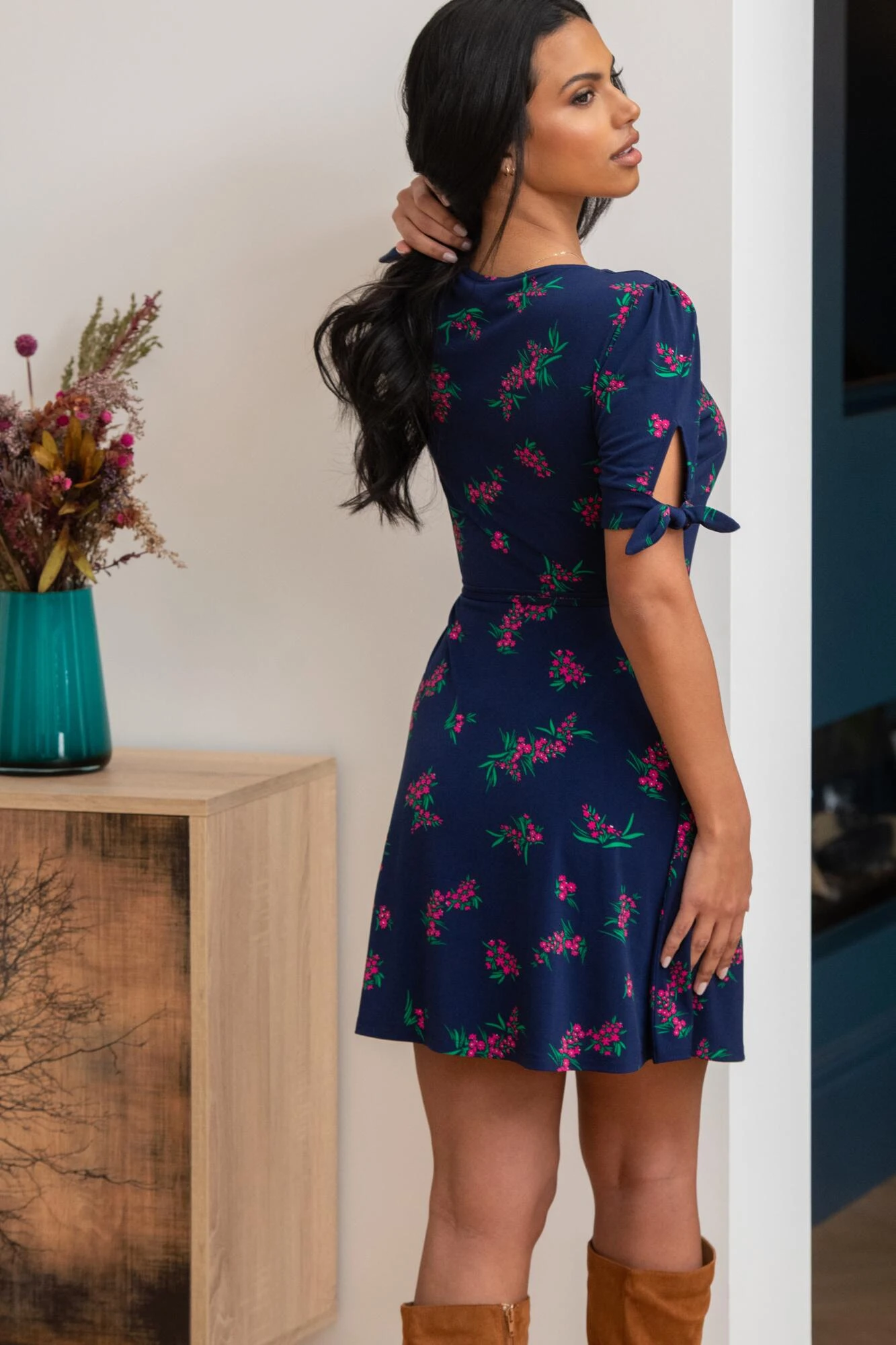 Looking for a light and breathable dress that doesn’t compromise on style? Our Bella Slinky Stretch Tie Sleeve Dress is the one for you! Featuring a feminine all-over print, this dress is designed in a slinky jersey fabric that skims your curves. With a flattering V-neck and front button detail, you won’t need to worry about gaping buttons with some extra room up top. And with an adjustable tie waist and tie sleeve details, this gorgeous dress allows you to alter it to fit your shape and curves. Love to do good as you look good? We take the impact that our business has on the planet seriously, that is why the Bella Slinky Jersey Tie Sleeve Tea Dress contains recycled content.