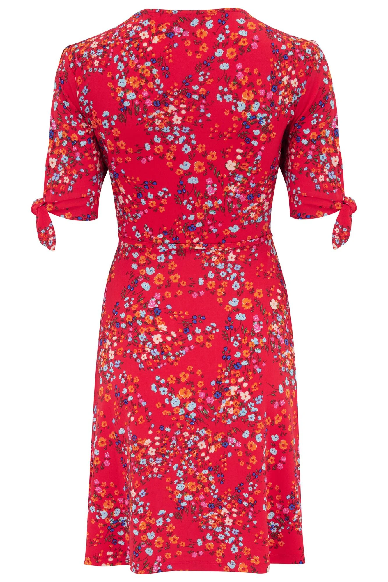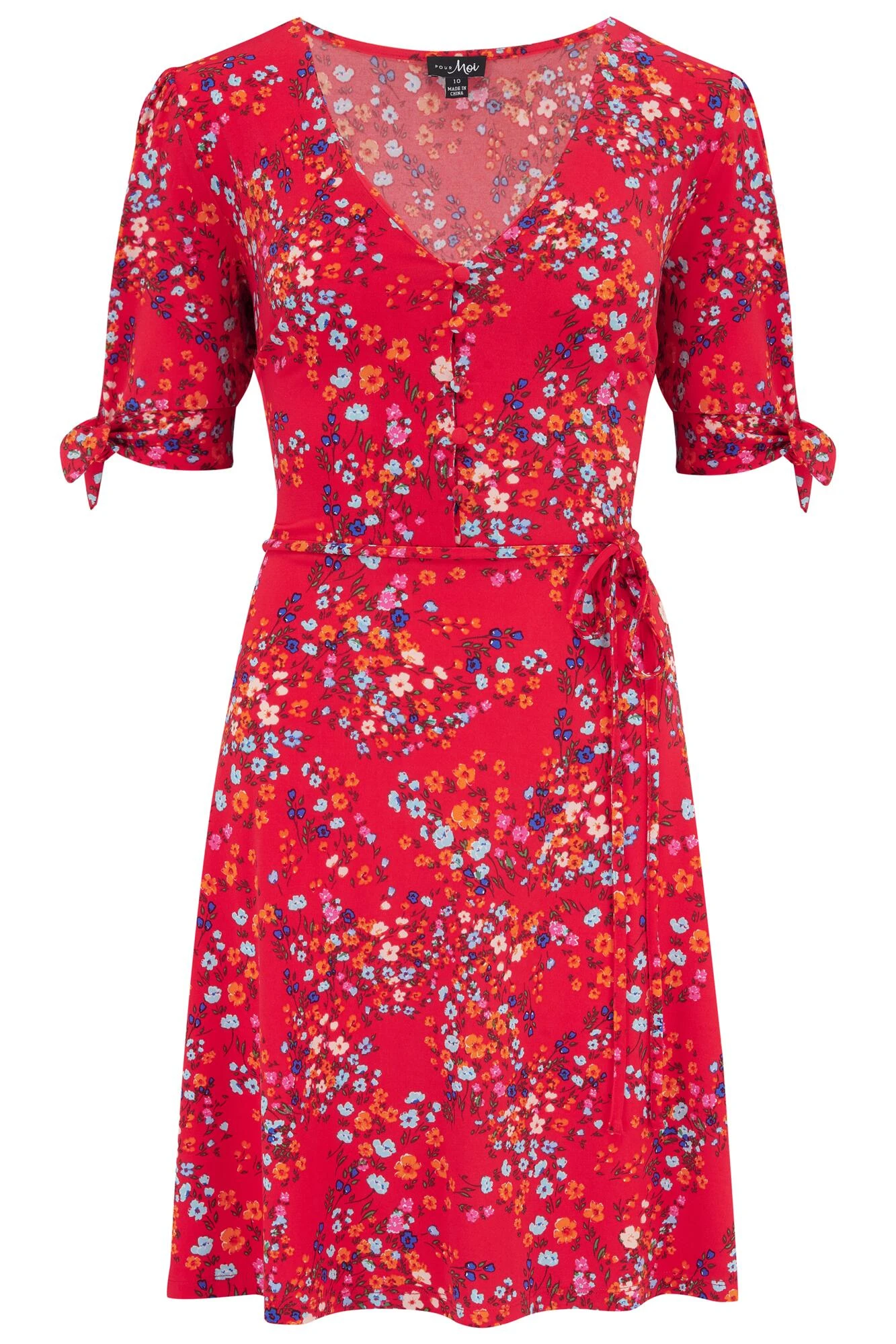 Pour Moi Bella Slinky Stretch Tie Sleeve Tea Dress – Red Floral