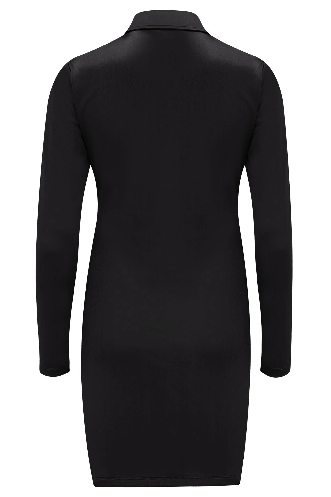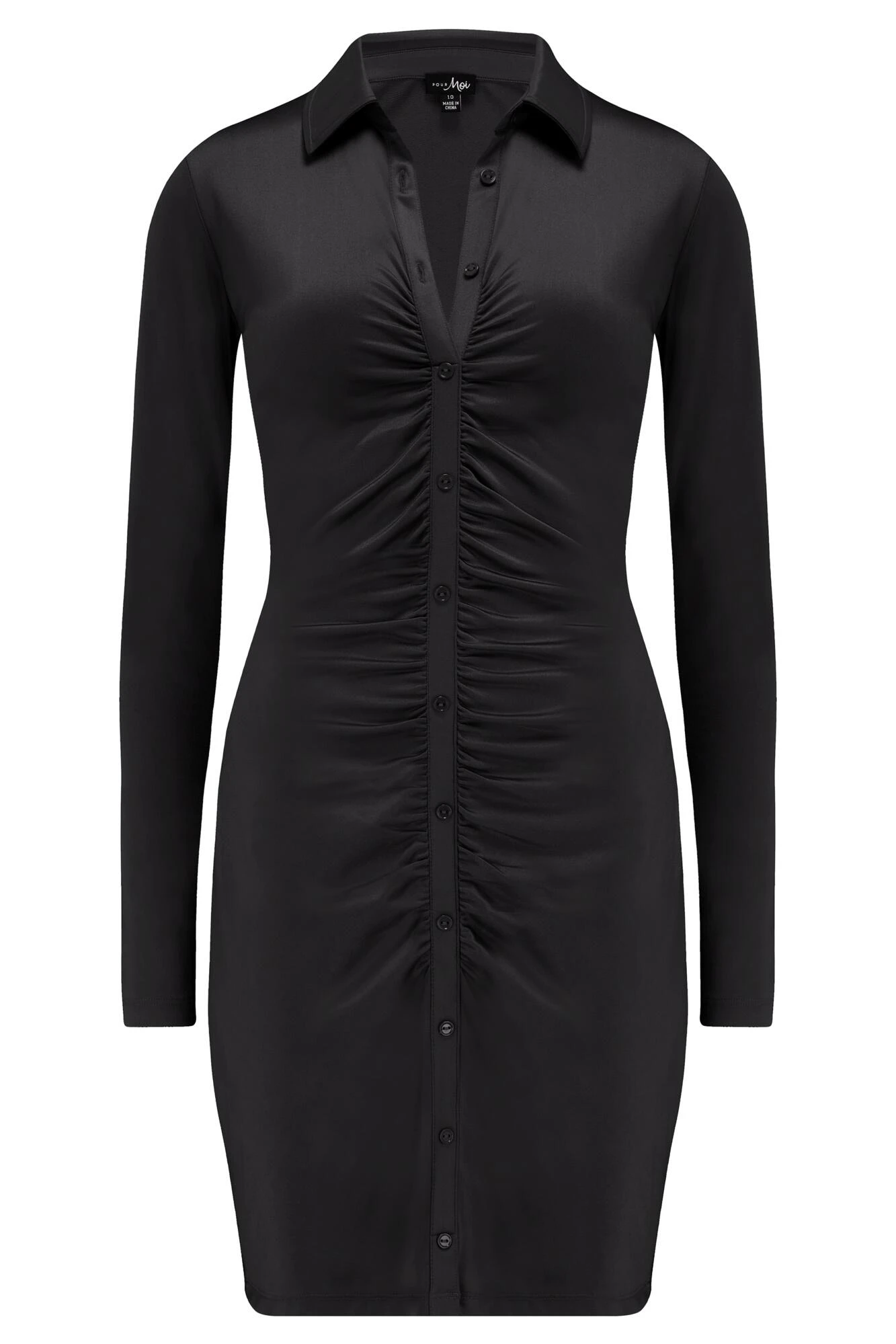 Did someone say glam casual? With a ruched front and long sleeves, our bodycon slim fit shirt dress provides a comfortable fit that sculpts your fabulous figure. The button-up front works for you, no matter what mood you’re in. Highlight your beautiful body in the Shine Jersey Dress that’s perfect for all of your plans.