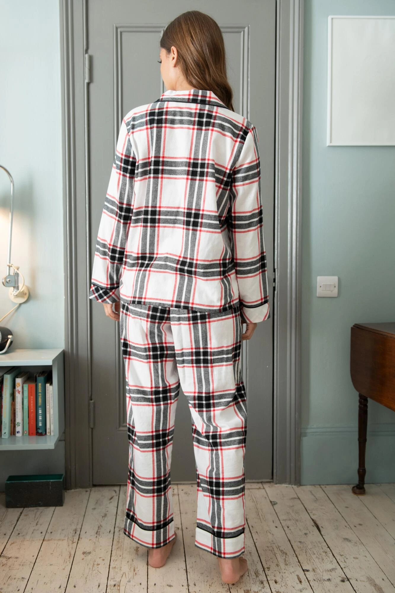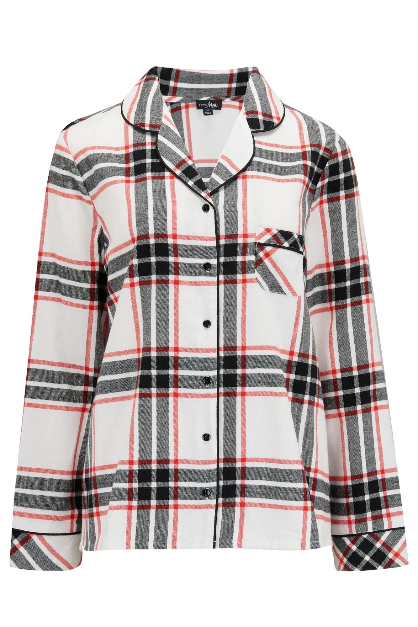 Pour Moi Cosy Check Brushed Cotton Pyjama Set – White/Black