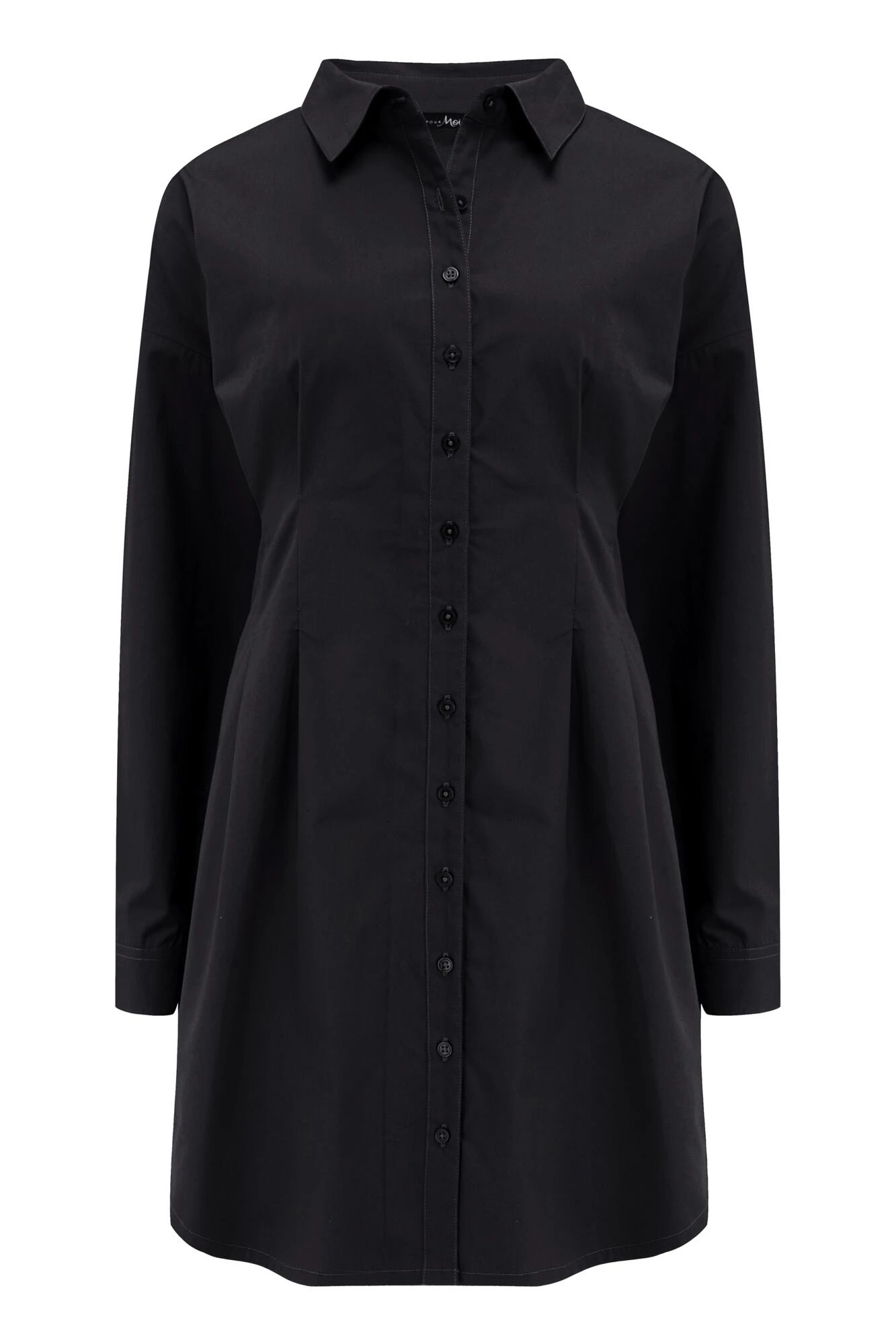 Pour Moi Cotton Poplin Cinched Waist Shirt Dress – Black