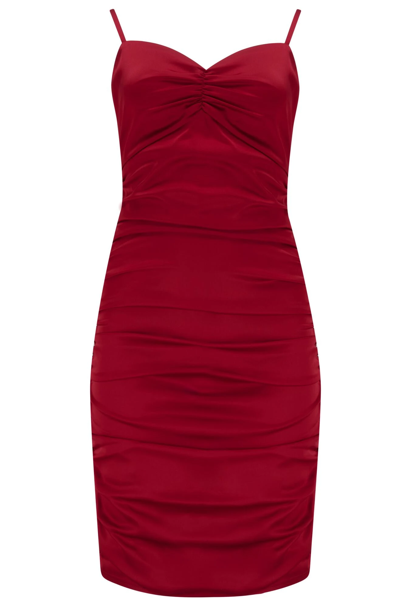 Leave a lasting impression in the Elena Stretch Satin Bodycon Mini Dress. With flattering ruched contour panelling this beautiful dress will see you through all your weekend plans. Featuring a sweetheart neckline and adjustable straps, it truly is the perfect summer dress.