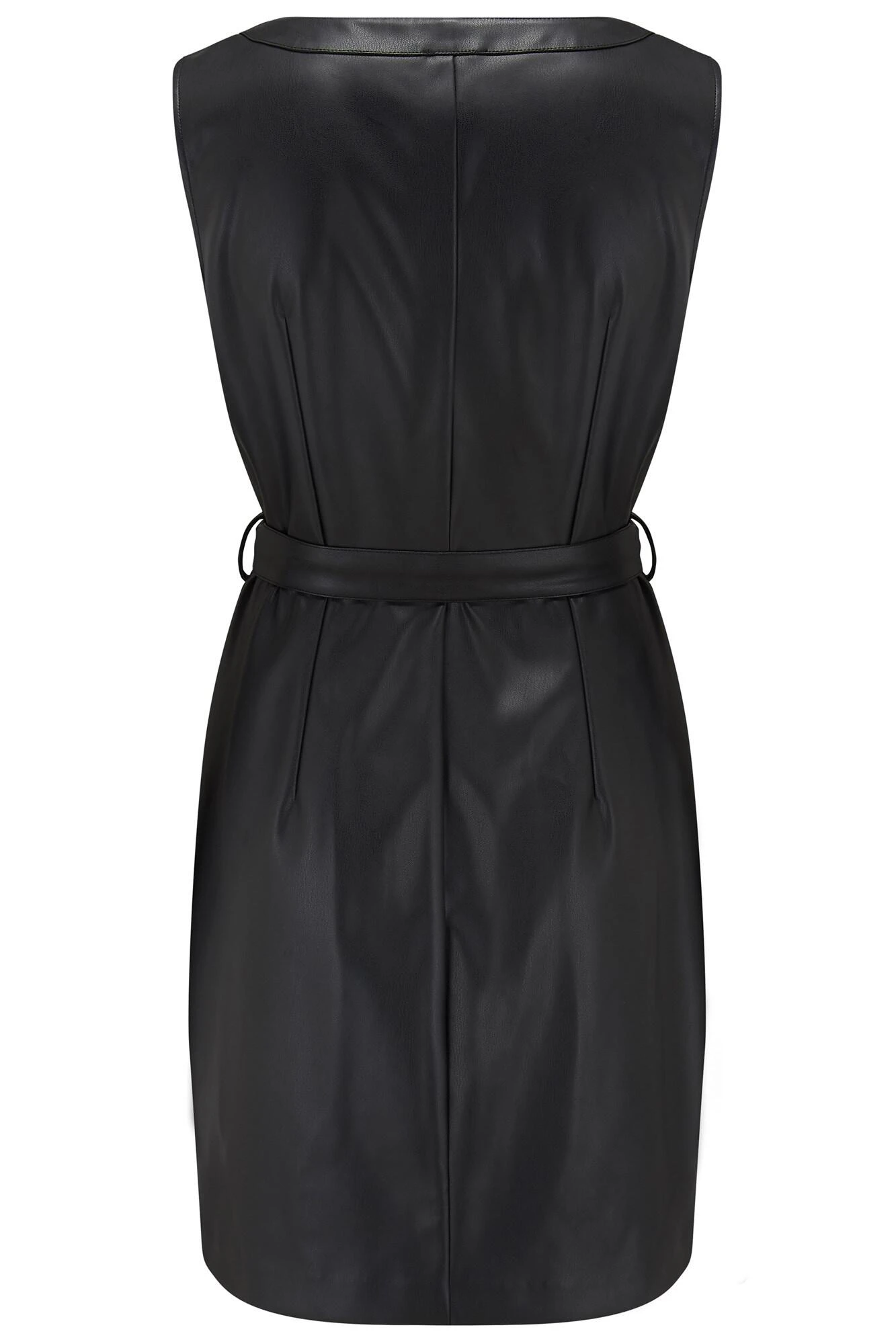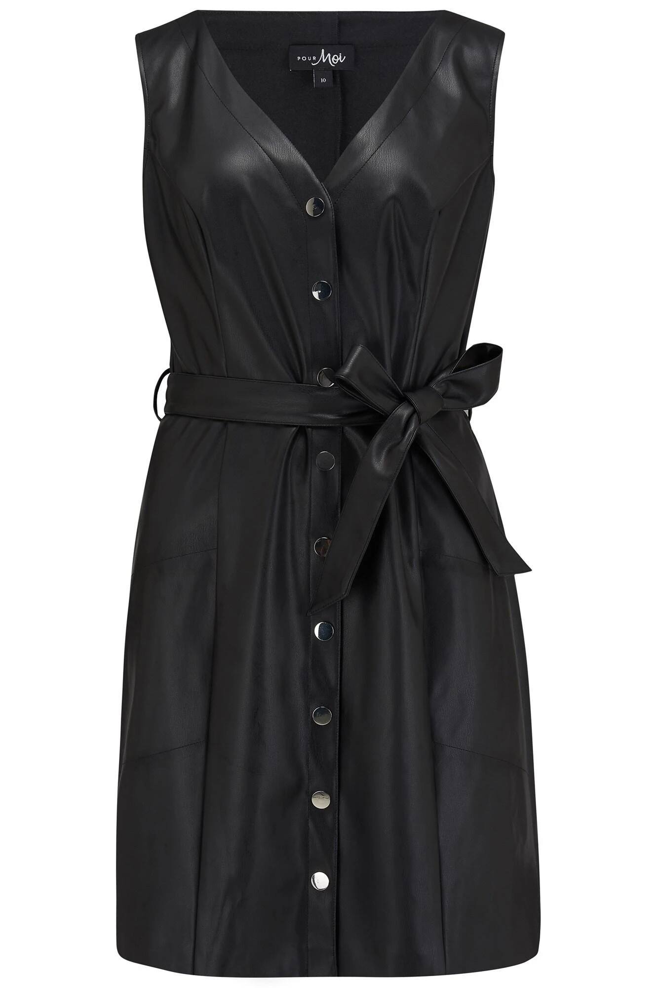 Give your wardrobe a bold update with this on-trend faux leather mini dress. This button through dress is everything you need! Feel fabulous in this flattering and functional PU dress with a self fabric belt and pockets. Style with statement boots for a hella sassy look!Â