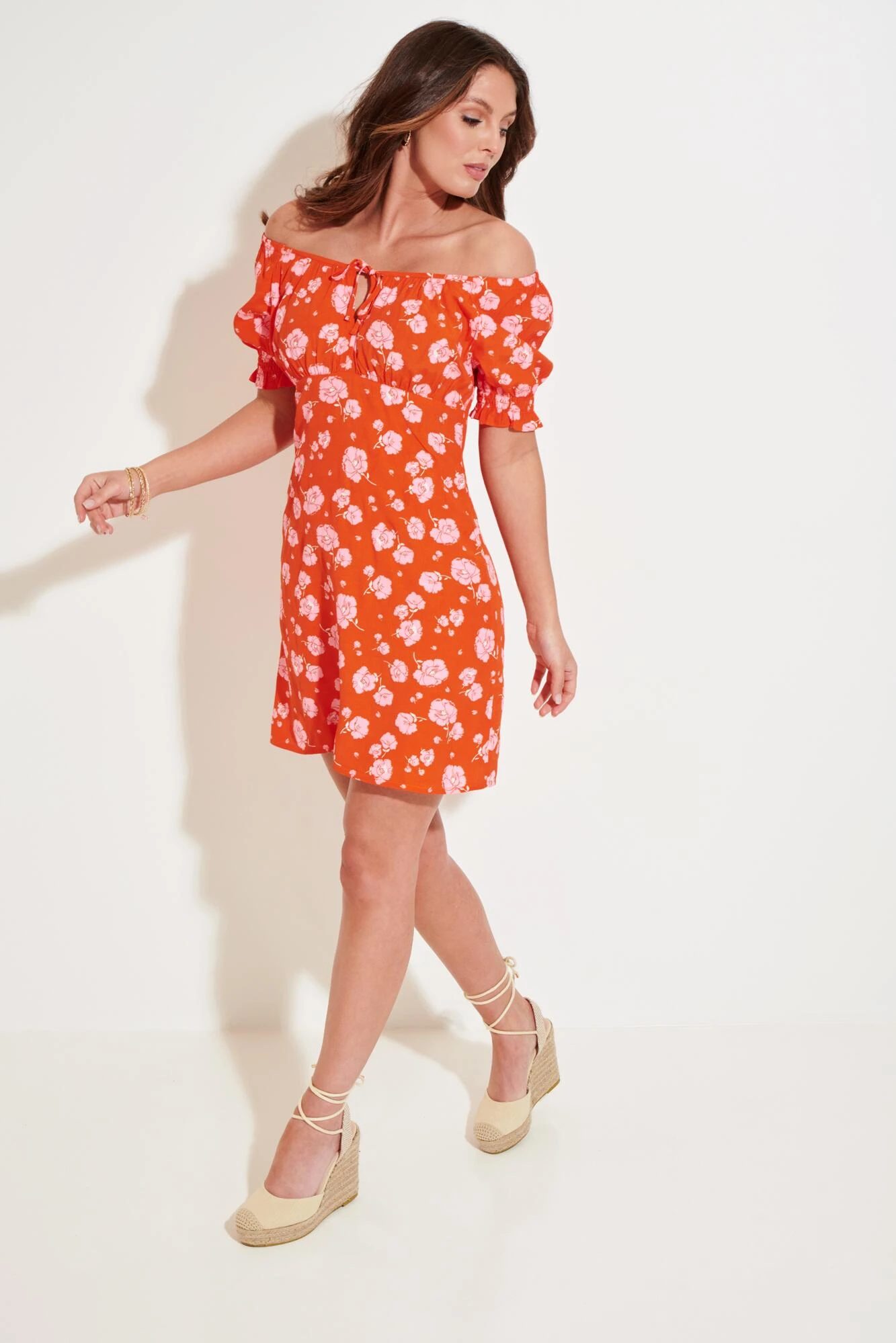 The must-have dress of the season! The Emma Puff Sleeve Mini Dress is the answer to all of your style dilemmas. Made from soft and breathable woven fabric to help you look and feel fabulous all day long. This fun and flirty versatile style can also be worn off should shoulder as a bardot. This mini dress is finished off sweetly with delicate tie detialing at the neckline and shirring detail on the puff sleeves. Wear with your favourite chunky trainers for a daytime look or lace-up wedges for the perfect summer evening.
