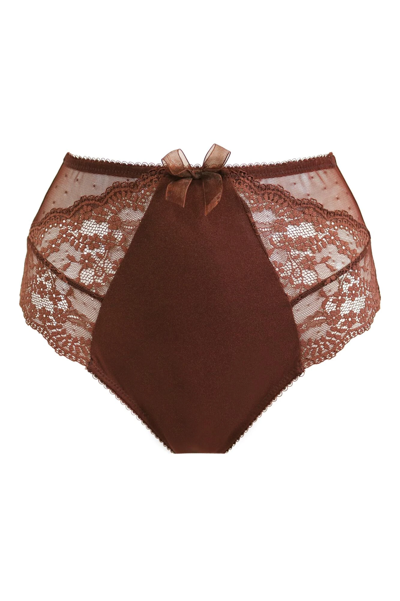 These beautiful high-waisted full briefs are designed with pretty spot mesh detailing to feel your fabulous self. This classic shape is completed with soft elasticated waistband and scalloped edging for a feminine finish. Match with one of our beautiful Flora bras for the perfect pairing.