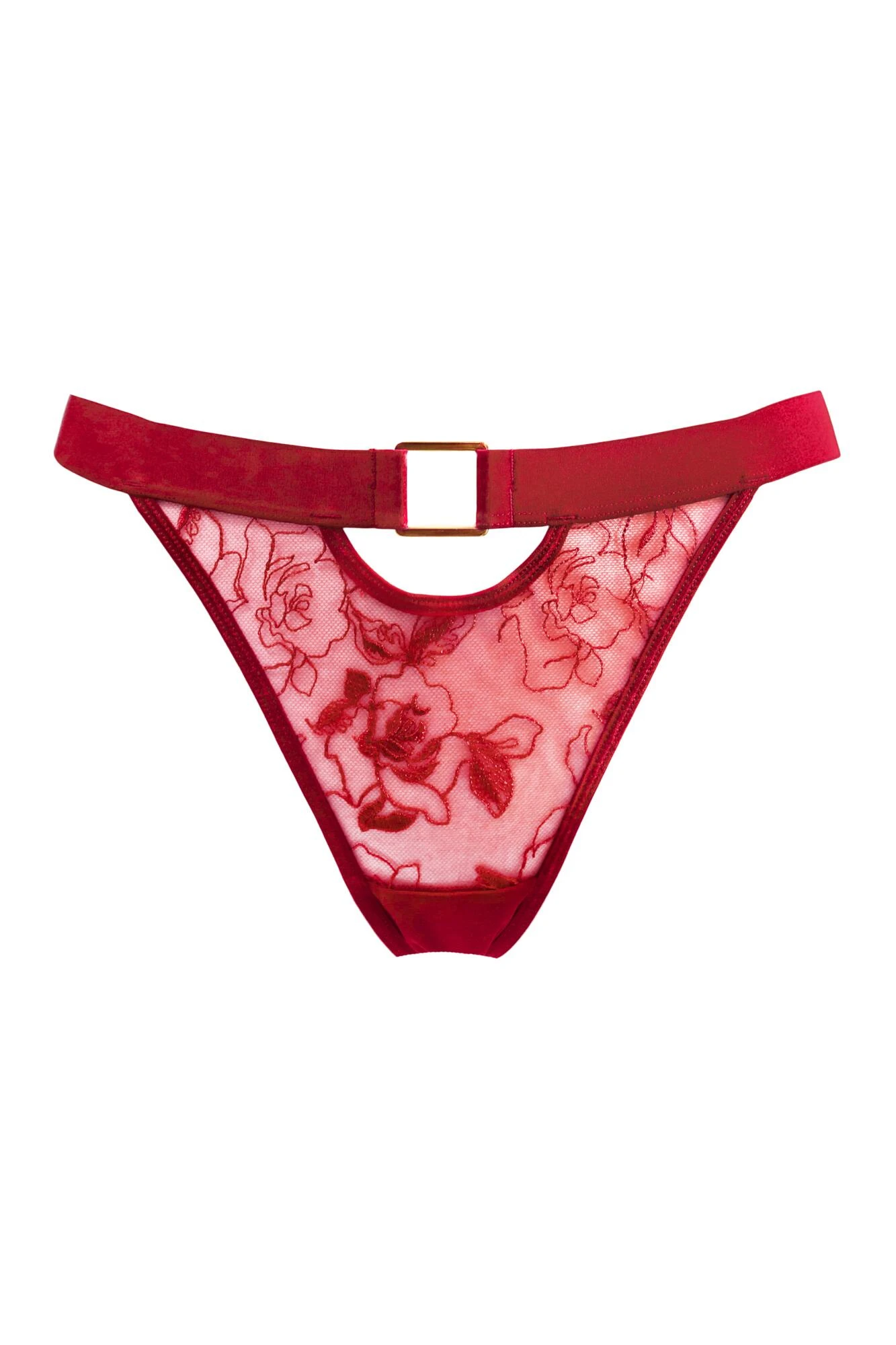 Make a bold statement in this delightfully feminine embroidered thong from the India Loves Collection. Adorned with luxe gold hardware and a cheeky keyhole cut out detail this high leg thong will feel beautifully soft against the skin. Pair this delicate thong with the India Embroidery Underwired Bustier for the perfect romantic look.