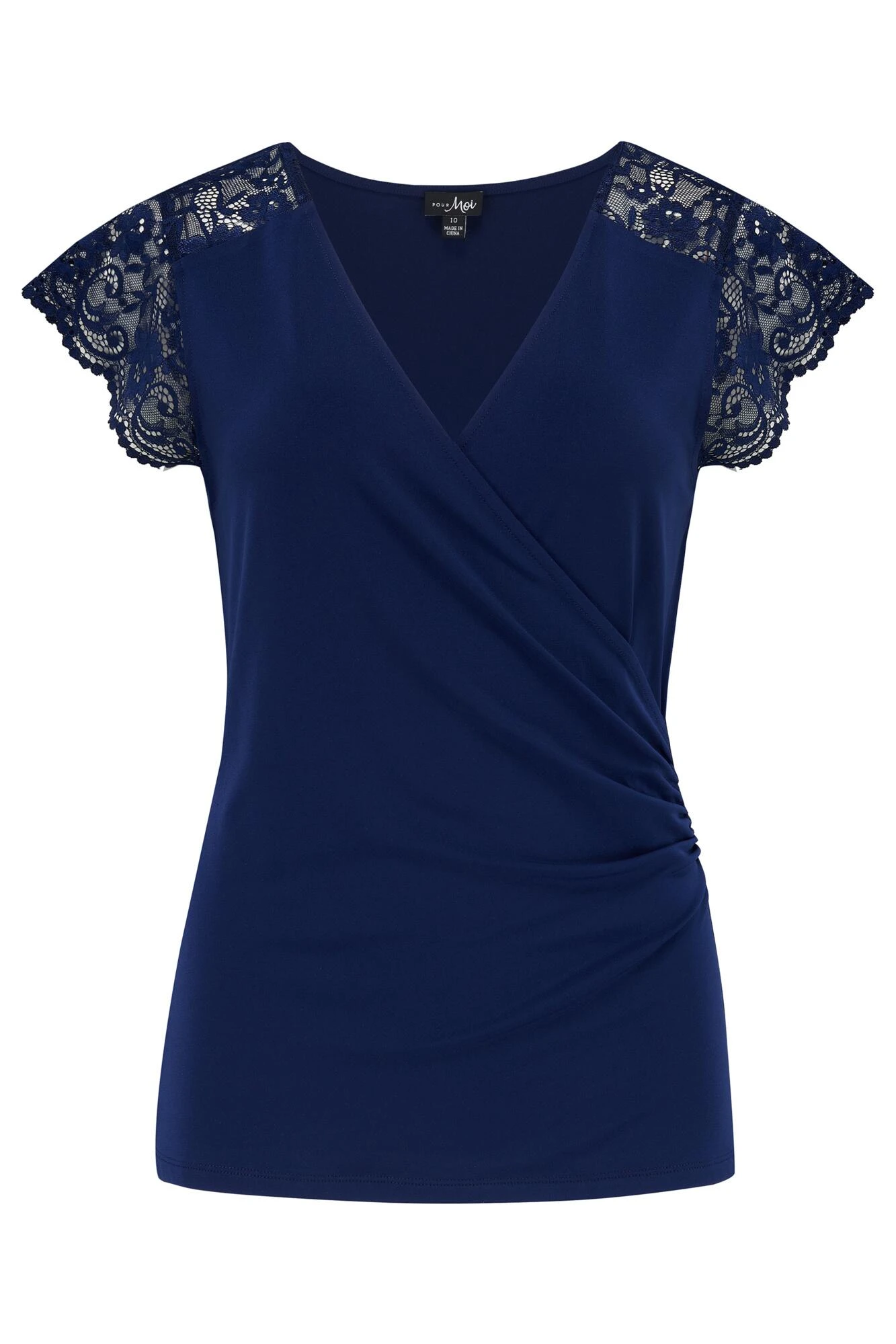 Take your look from office-to-out with the Julie Slinky Jersey Lace Trim Wrap Top. The ultimate wardrobe staple that effortlessly dresses up any look. Featuring mini cap lace sleeves, wrap front, and a flattering V-neckline, this top is the perfect blend of feminine flair and contemporary style. Ideal for wearing from the office to after-work drinks, this top is versatile and timeless – perfect for both casual and formal occasions. Designed with our D+ babes in mind so you can feel comfortable, supported and stylish all day long! We take the impact that our business has on the planet seriously, that is why the Julie Slinky Jersey Lace Trim Wrap Top contains recycled content.
