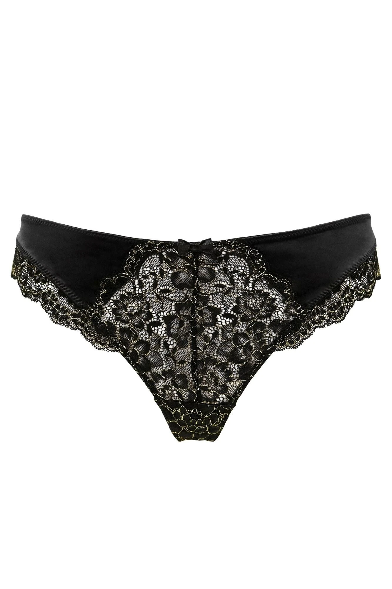 - Luxe metallic detailed floral lace on front panel and edging over legs