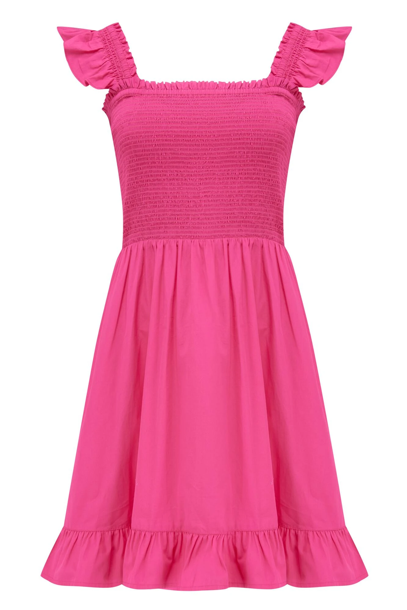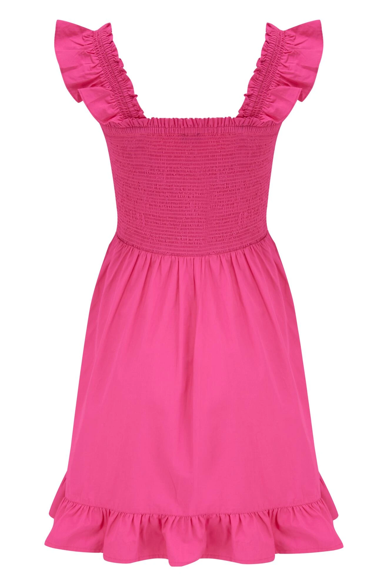 When summer’s calling, throw on the Lucy Poplin Frill Shoulder Mini Dress. Made from breathable cotton to keep you looking cool and feeling fabulous on even the hottest summer day. With a flattering shirred bodice, this cute and feminine dress is finished with frill detailing to the straps and hem. The perfect summer dress for a warm day.