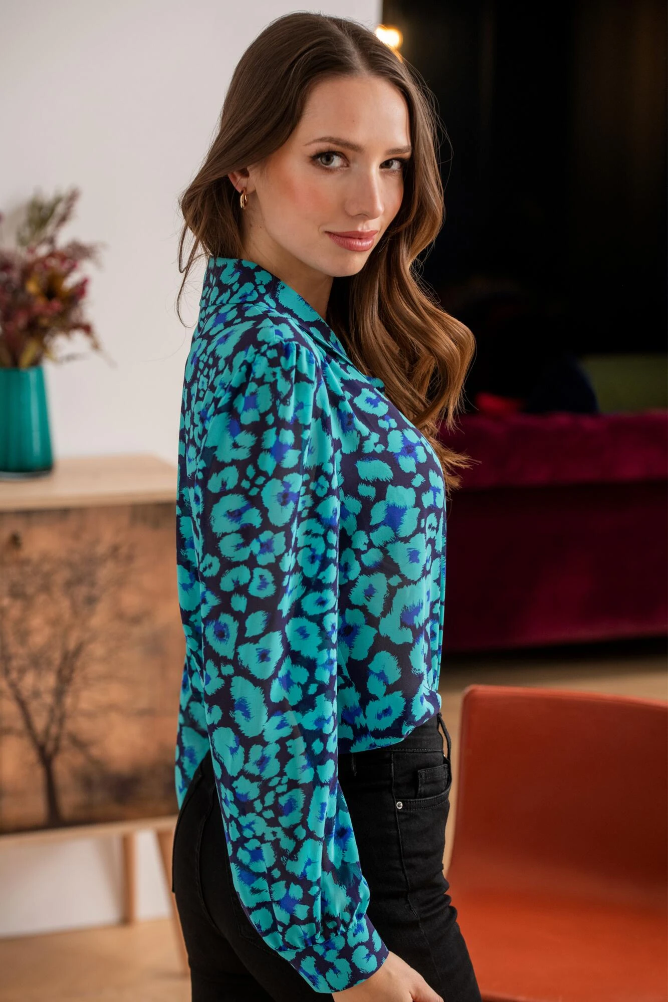 Pour Moi Natalya Chiffon Shirt – Navy/Aqua