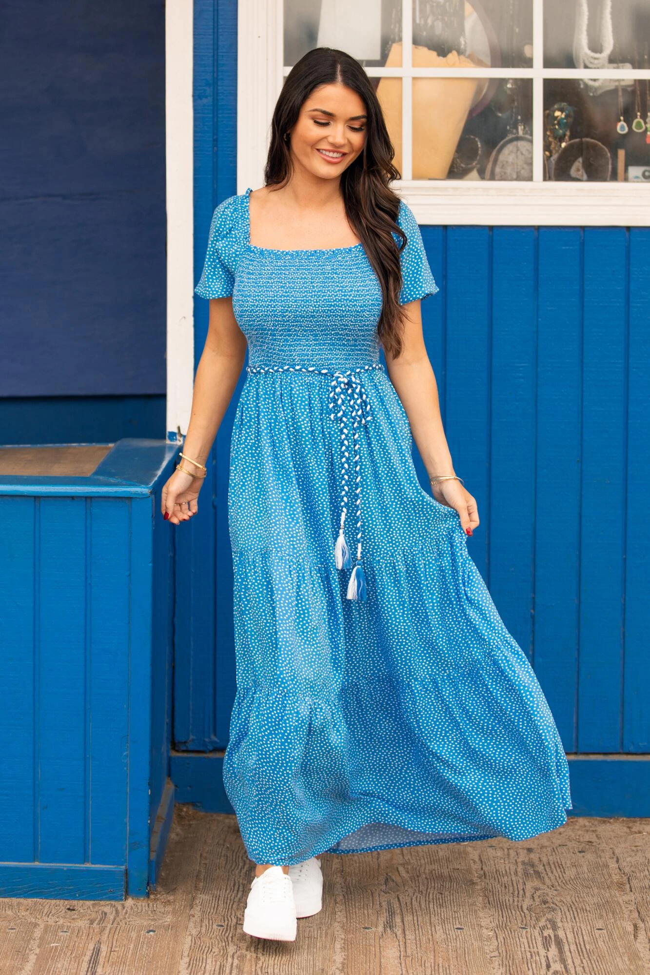 The ultimate summer dress has arrived! The Sadie Maxi Dress with its flattering shirred bodice and tiered skirt make for a floaty, flirty and feminine summer look. Perfect for the summer weather this breathable dress with its frill strap detailing and shirred bodice creates the most beautiful silhouette. Designed with our D+ babes in mind so you can look fabulous and still feel comfortable and supported.