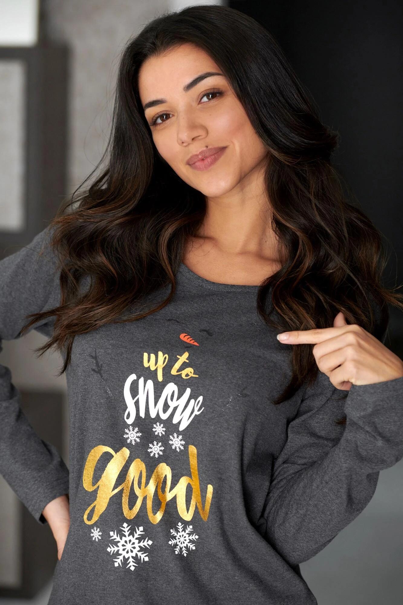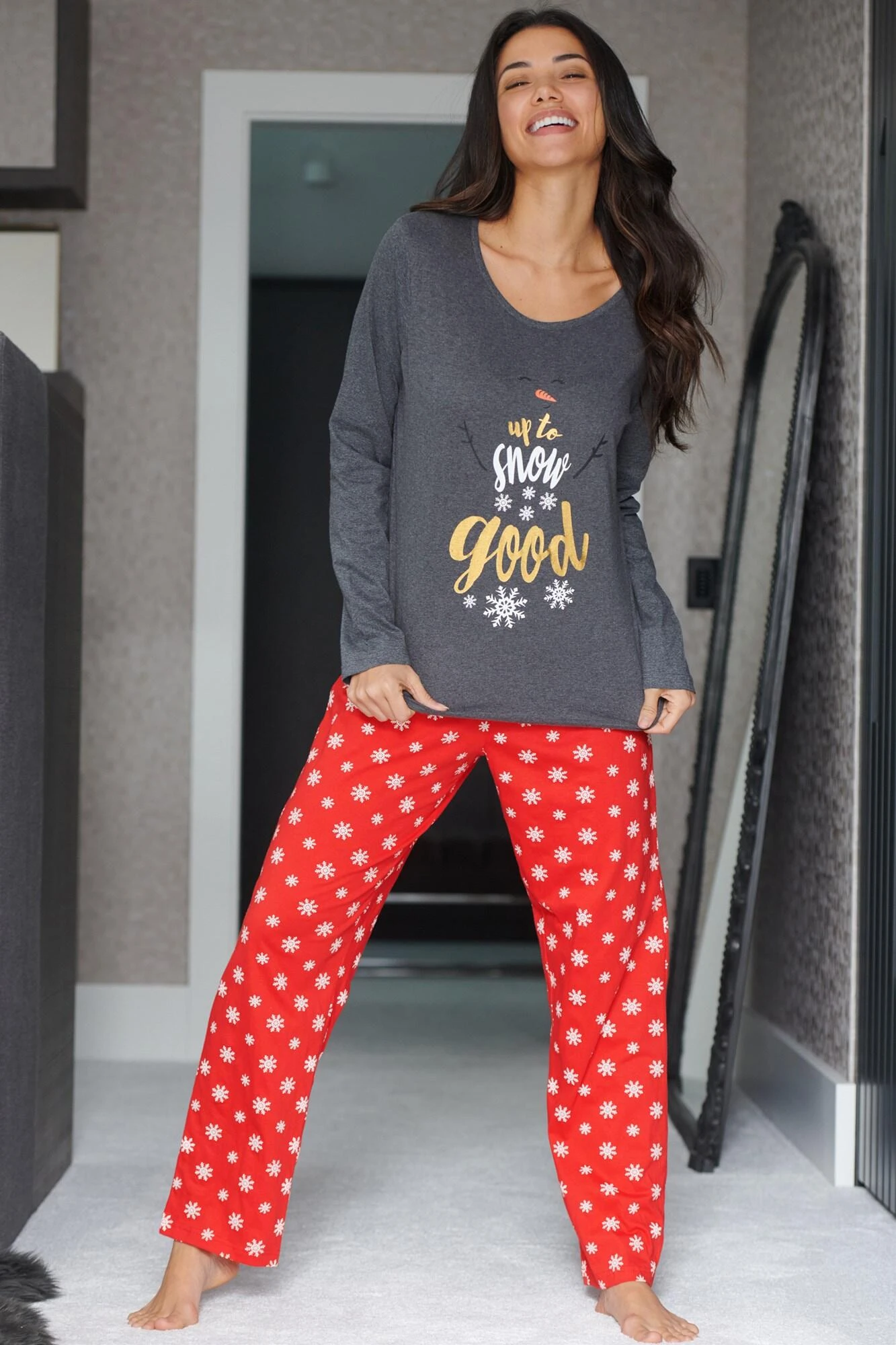 Have you been naughty or nice? Get up to no good with this cute printed pyjama set. This super soft style is perfect for those colder nights, featuring an elasticated and adjustable tie wasit for the ultimate cosy look and feel.