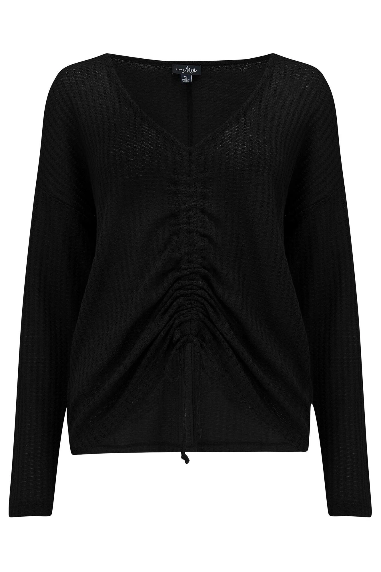 Get off-duty ready with this on-trend rouched long sleeve top. Own your style with adjustable details, this waffle knit top is so comfy and stylish you will never want to take it off! Pair with any bottoms for a stylish look or match with our Florence Print collection.